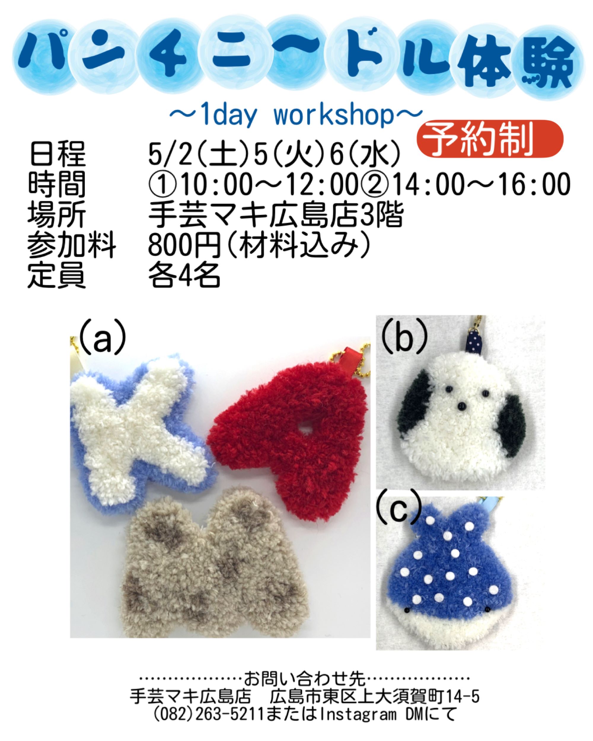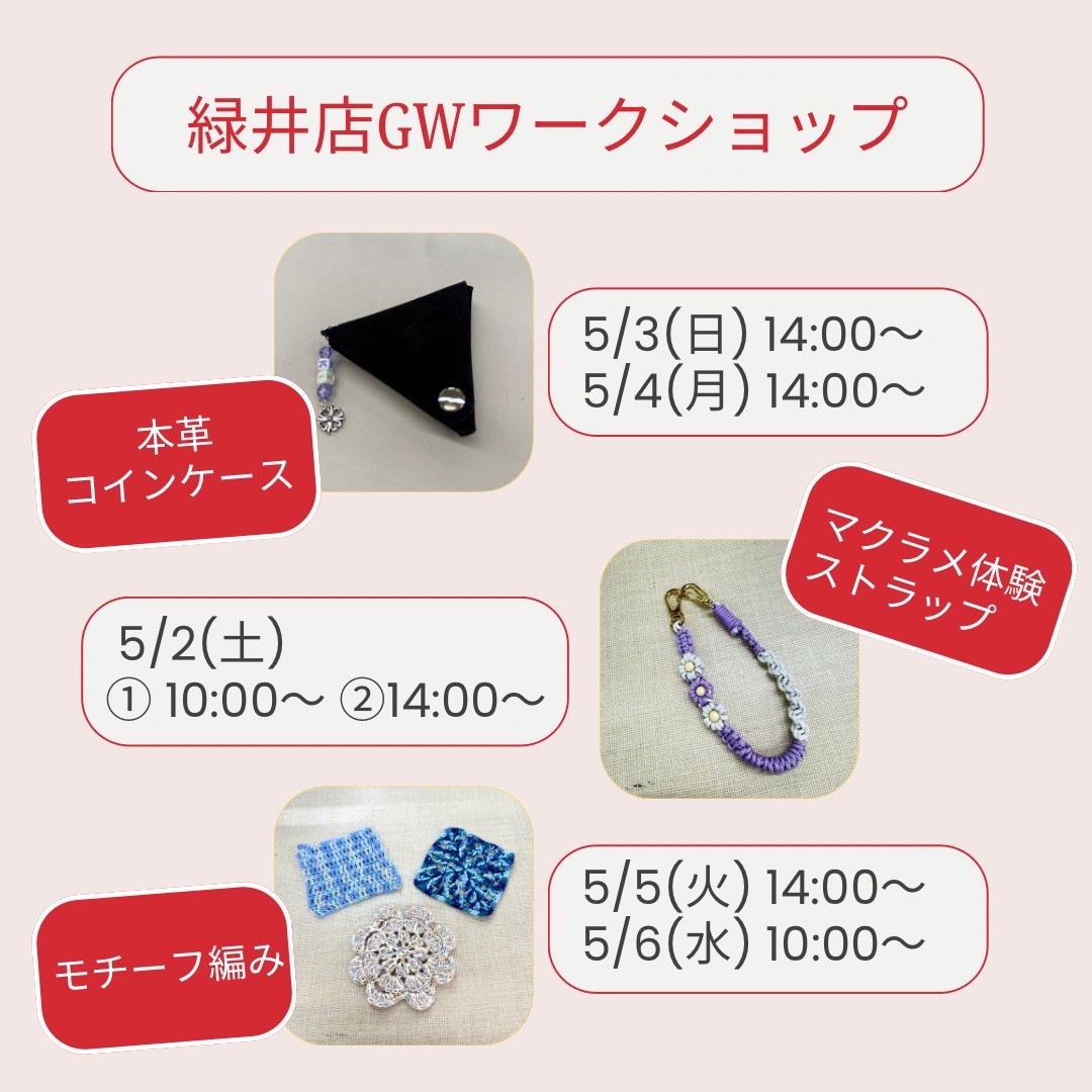 緑井店の4月の教室・ワークショップのご案内です。各教室は随時生徒さん募集中!今月は4/18.19に作家さん参加のワークショップマルシェも開催いたします☆ また、1dayワークショップを開催していただく作家さんや各マルシ […]