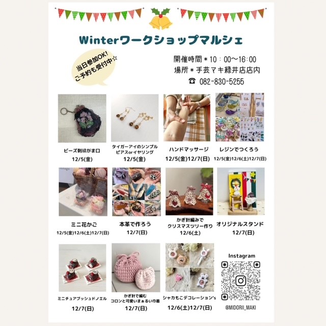 いつも手芸マキをご利用いただきありがとうございます。 広島店では、毎週末ワークショップを開催しています。今回はスタッフによるワークショップをご案内します! ※つまみ細工のクリスマスツリーは要予約です この他、毎週いろんな […]