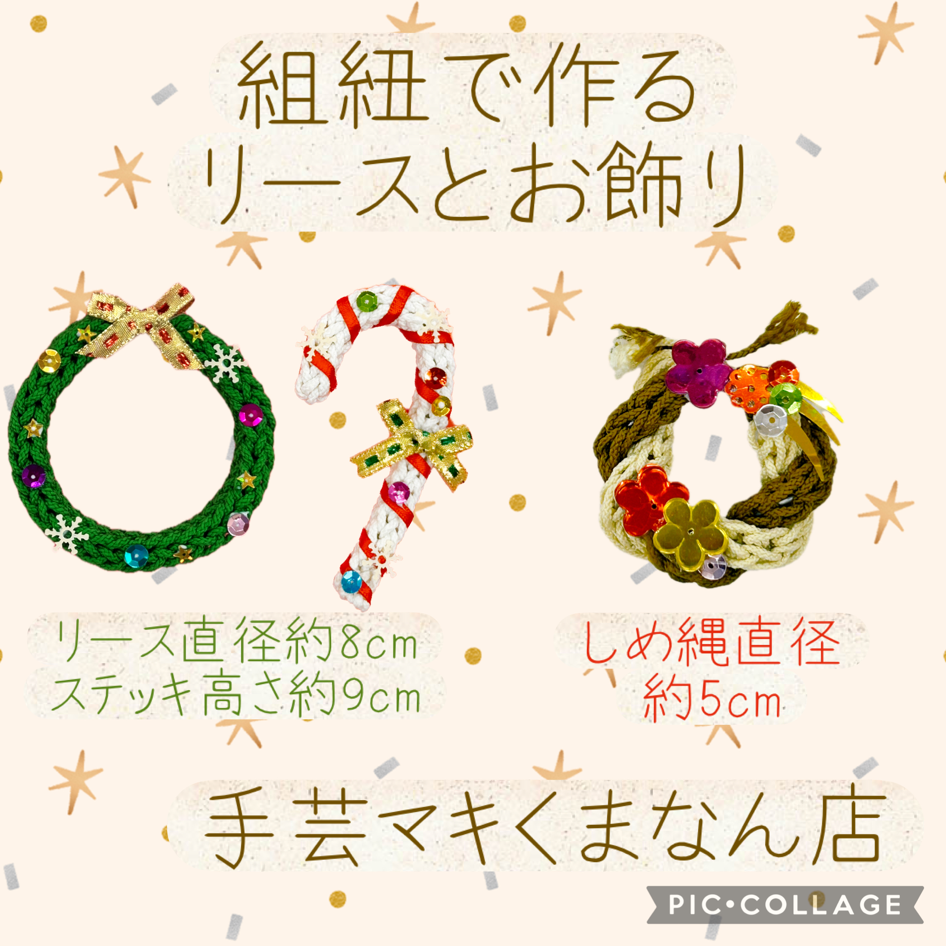 いつもありがとうございます。手芸マキくまなん店です! もうすぐクリスマスです。 手作りオーナメントつくりませんか☆ 組紐でリースやステッキが作れます! ツリーの飾りやピンを付けてブローチにもできます❣ さら […]