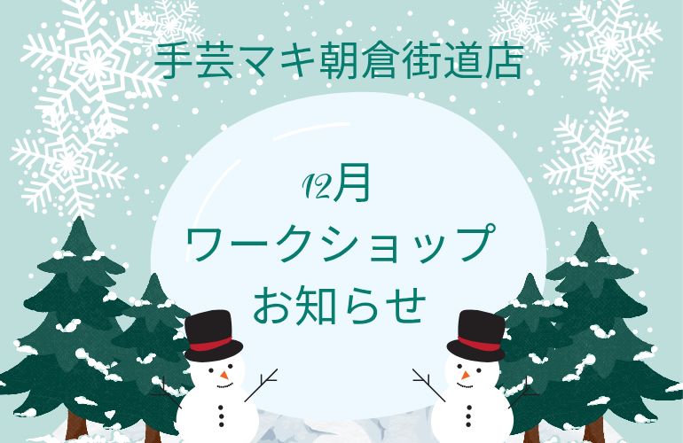 こんにちは 手芸マキ朝倉街道店です。ワークショップのご案内です。クリスマスプレゼントにいかがでしょうか。 お問い合わせご予約は手芸マキ朝倉街道店へお願い致します。TEL 092-918-1851 福岡県筑紫野市針摺中央2 […]