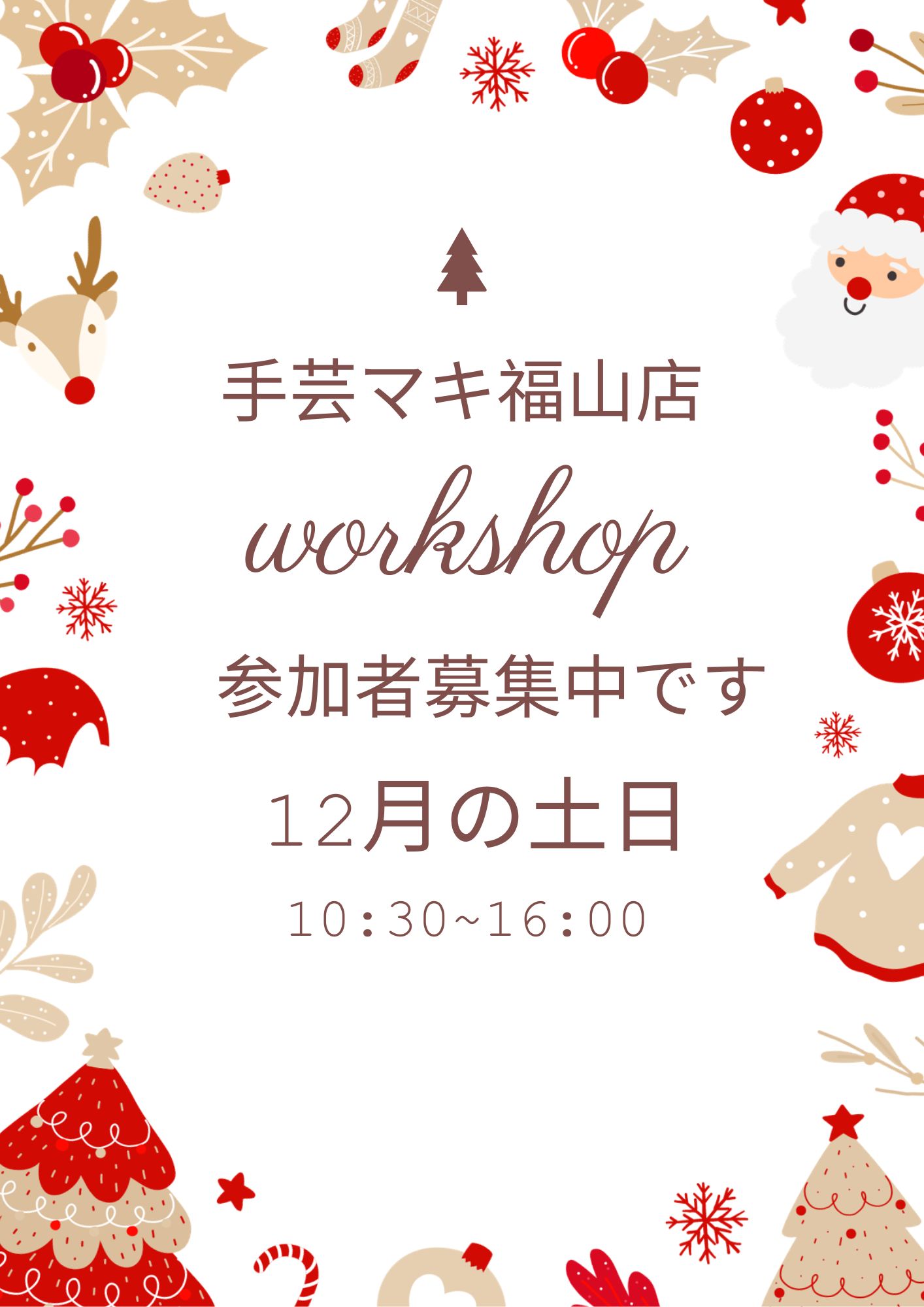 12月も週末はワークショップ開催してます!様々な楽しい手作り体験を企画しています。ぜひ、手芸マキ福山店に遊びにご来店ください。ご来店だけでも駐車場は無料です☆日時: 12月6日・7日・13日・14日・20日 お […]