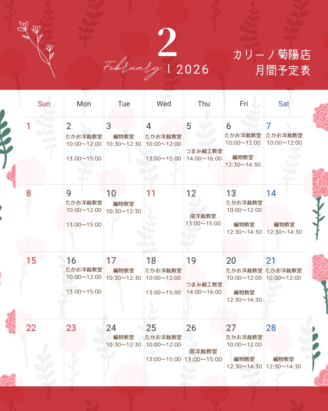 カリーノ菊陽店2月の予定です♪
