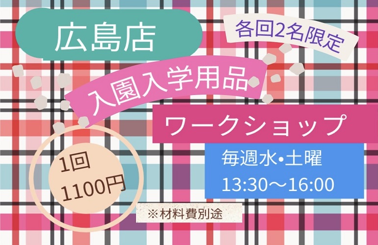 こんにちは😃 手芸マキ広島店です いつもご覧いただきありがとうございます 入園入学の用意はお済みでしょうか? 初めて作る方、サイズ指定などで困っている方など 少人数で教わるワークショップを行いますので 興 […]