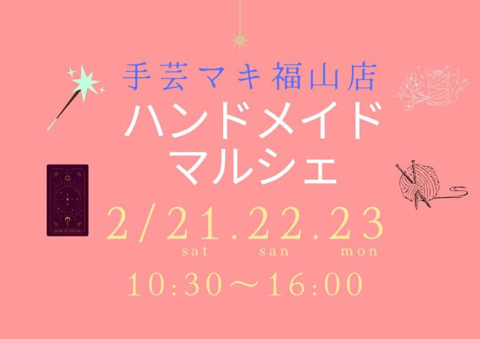 いつも手芸マキ福山店をご利用いただきありがとうございます。28回目になります『ハンドメイドマルシェ』開催します!!今回は3日間開催です!販売はもちろんワークショップもあるので、様々な体験もできますよ。ぜひ、手芸マキ福山店 […]