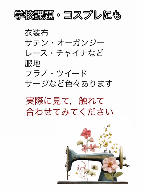 こんにちは手芸マキ岡山平井店ですご入学、ご進級をされた皆様、ご家族の皆様、おめでとうございます。本日は学生の皆様へ服地と衣装生地のご案内です 新しいこの季節に自分だけの一着を形にしてみませんか!手芸マキではフラノやサージ […]