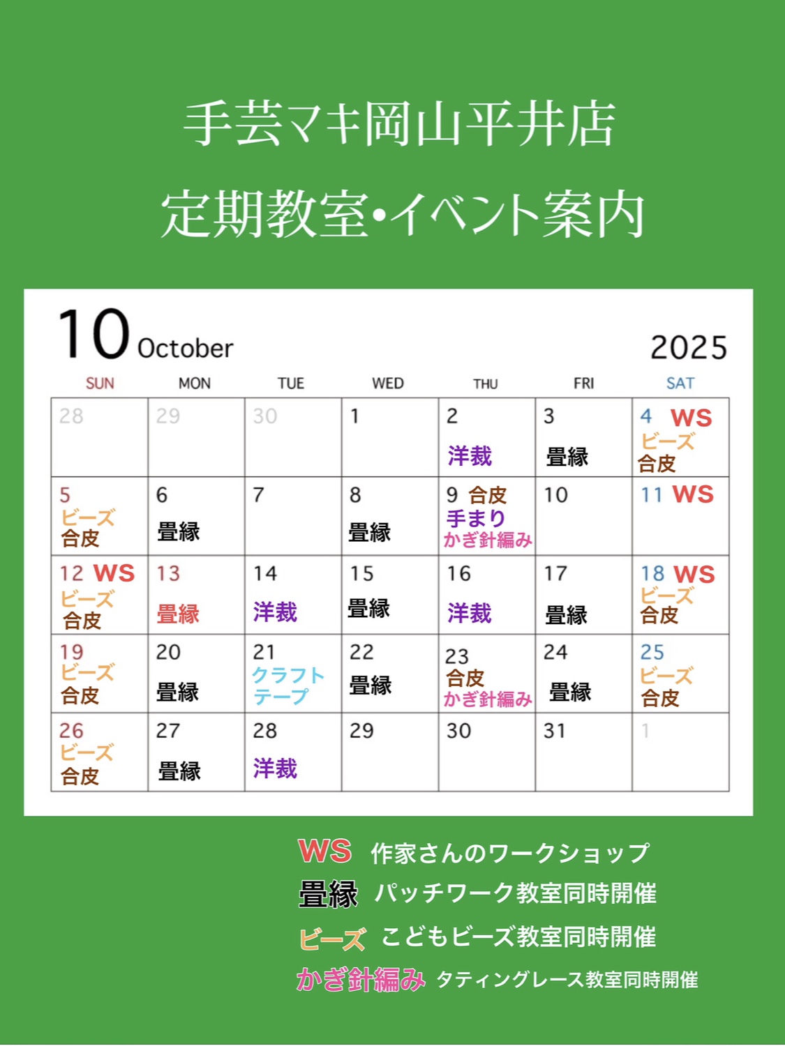 開催場所 手芸マキ岡山平井店 店内 岡山市中区平井店6-7-1 ホームセンタータイム平井店様2F
