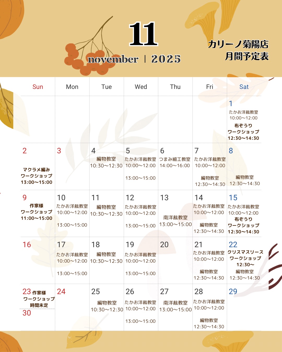 カリーノ菊陽店11月の予定です♪