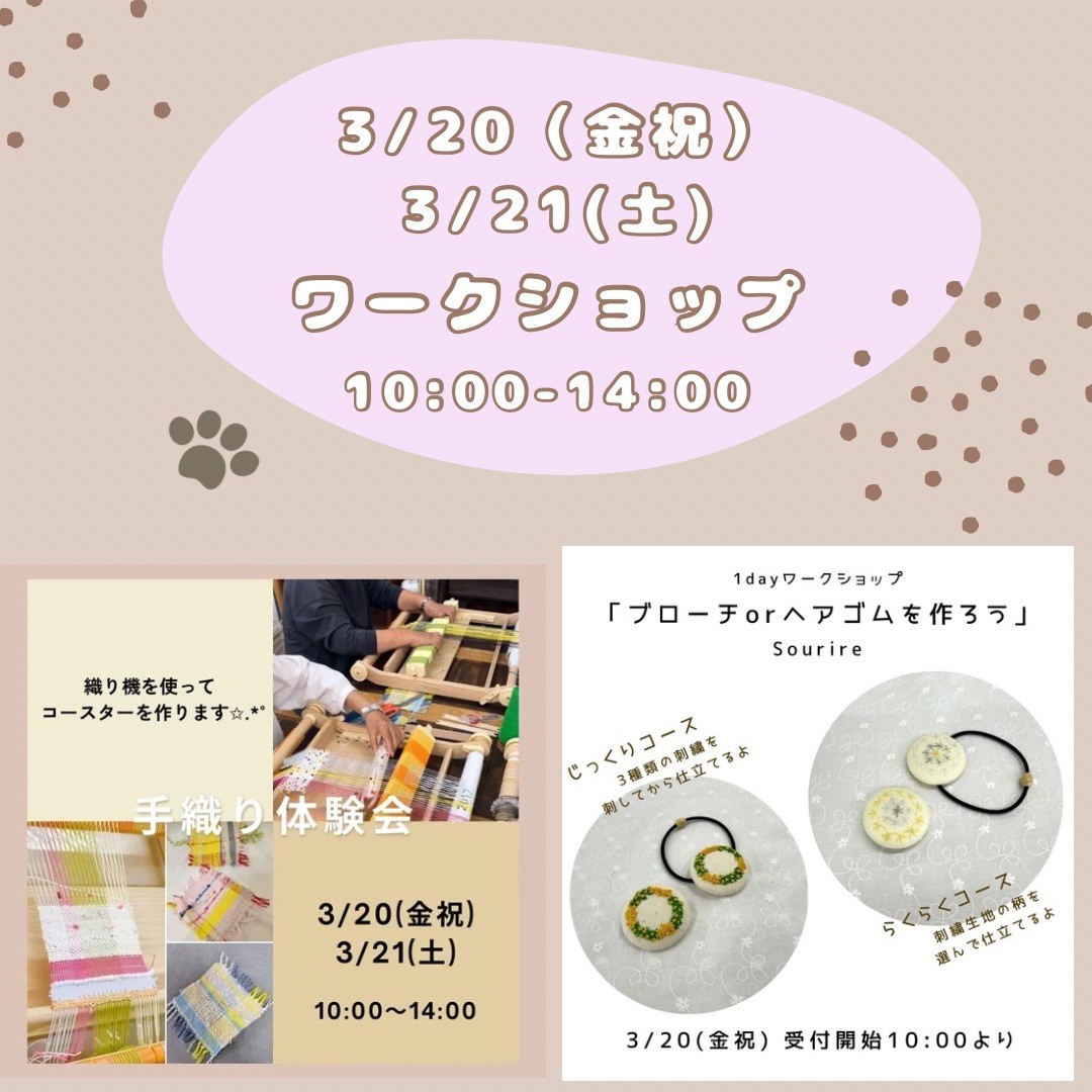 3/20(金祝)3/21(土)の2日間、作家さんによるワークショップ&体験会を開催します。